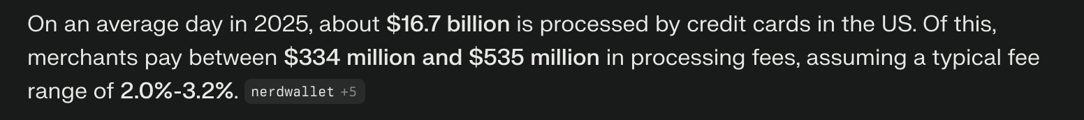The math adds up to $180B per year - almost exactly the market cap of Shopify.