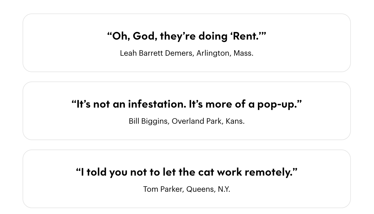 "I knew we should’ve gone with the condo, but you said, ‘How bad could the neighbors be?’"