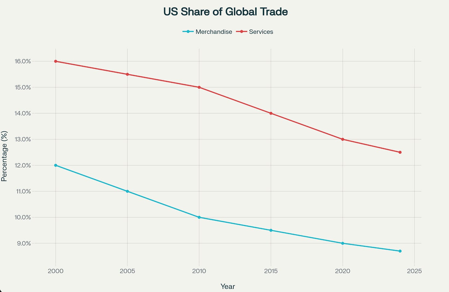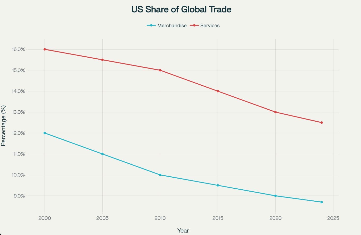 Is the USA losing global trade market share? - yes