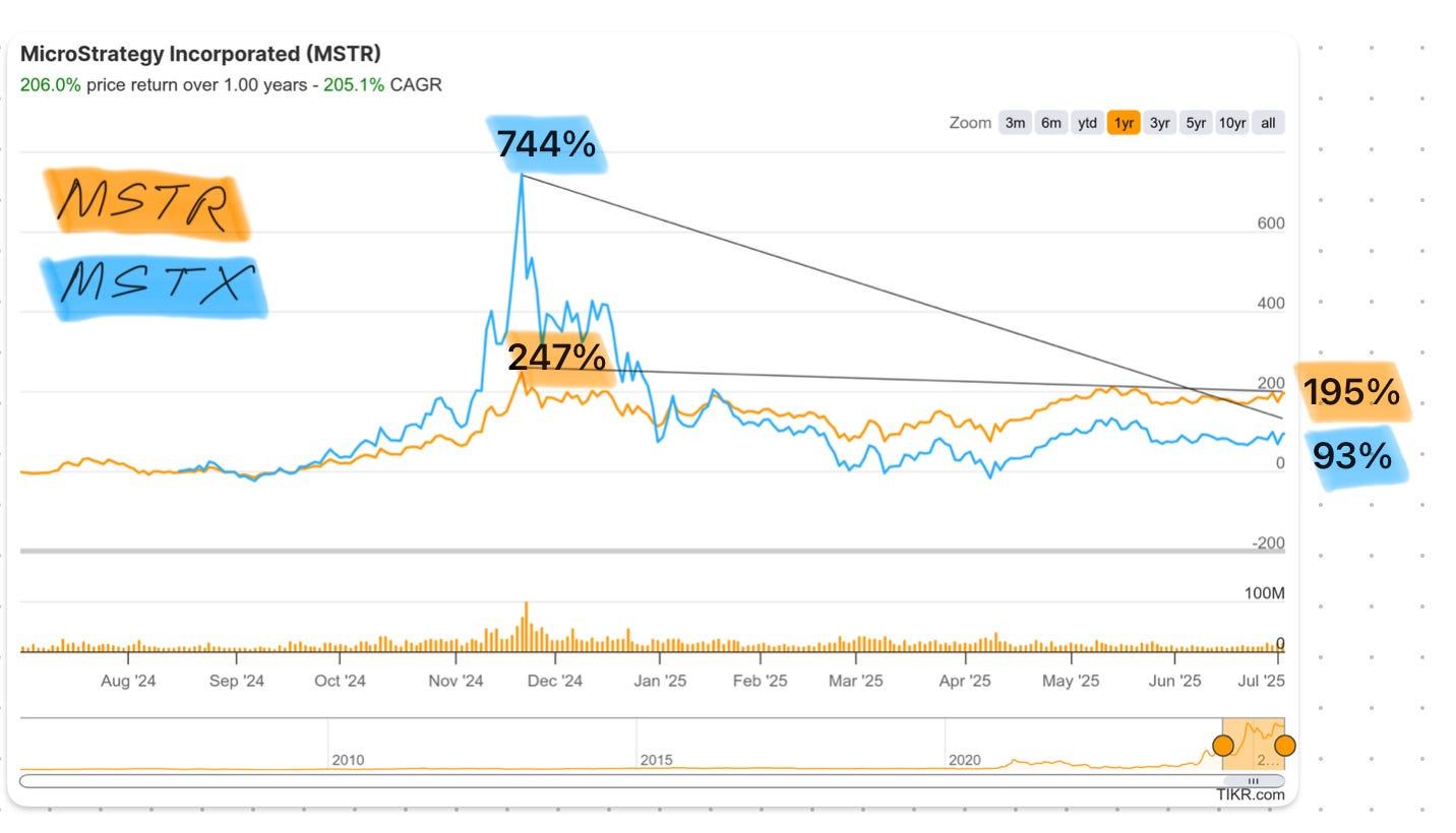 The investors gamblers seeking this product are not satisfied with bitcoin’s volatility, nor that of MSTR - they want MORE!